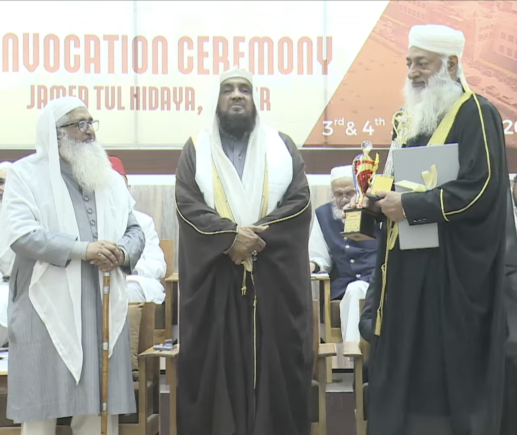 تصویر میں محترم مفتی ڈاکٹر عبد الخالق صاحب امیر جامعۃ الہدایہ، جے پور حضرت مولانا محمد فضل الرحیم مجددی صاحب اور شیخ يعقوب دہلوی المدنی صاحب کے ہمراہ بھی نظر آ رہے ہیں۔